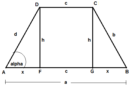 $ a = 5.1 $, $ c = 0.7 $ und $ h = 1.7 $! Flächeninhalt und umfang von trapezen. Gegeben ist zur berechnung vom flächeninhalt ein trapez mit den seitenlängen und sowie die höhe. Es werden formeln für alle arten von trapezoiden und sonderfälle für gleichschenklige trapezoide angegeben. Es hat zwei parallel zueinander liegende seiten.
